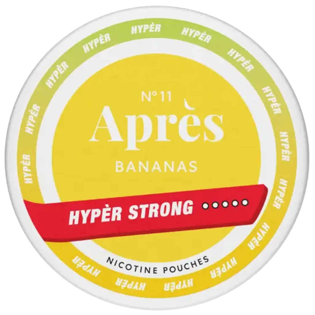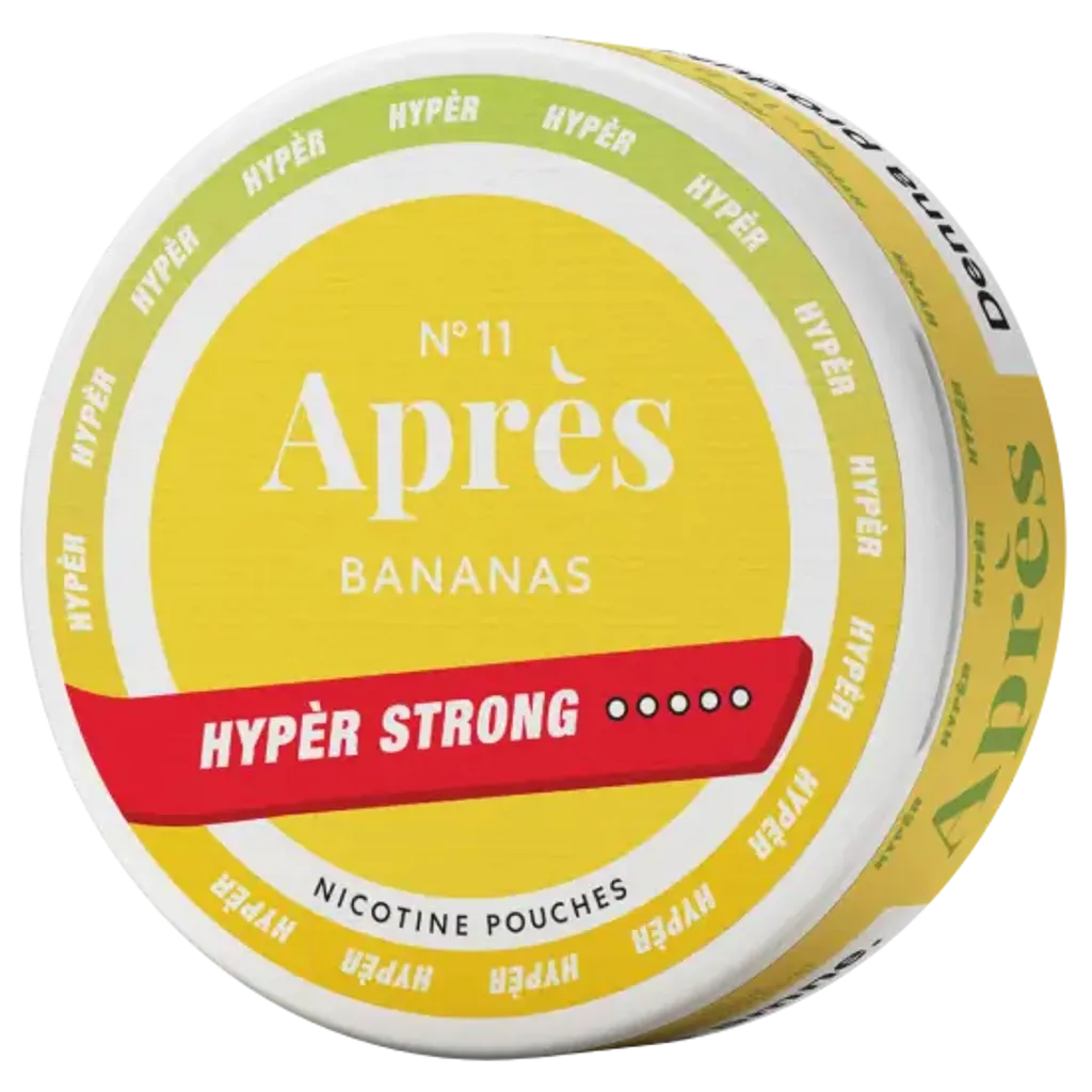 Après Banana Hyper Strong sind extra starke Nikotin Pouches mit 20 mg/g Nikotin. Der erfrischende Mix aus Banane sorgt für ein intensives Geschmackserlebnis. Die Slim-Beutel sind tabakfrei, diskret und ideal erfahrene Nutzer. Hergestellt von Après Nicotine AB. Enthält 20 Pouches pro Dose. Jetzt Après online kaufen.