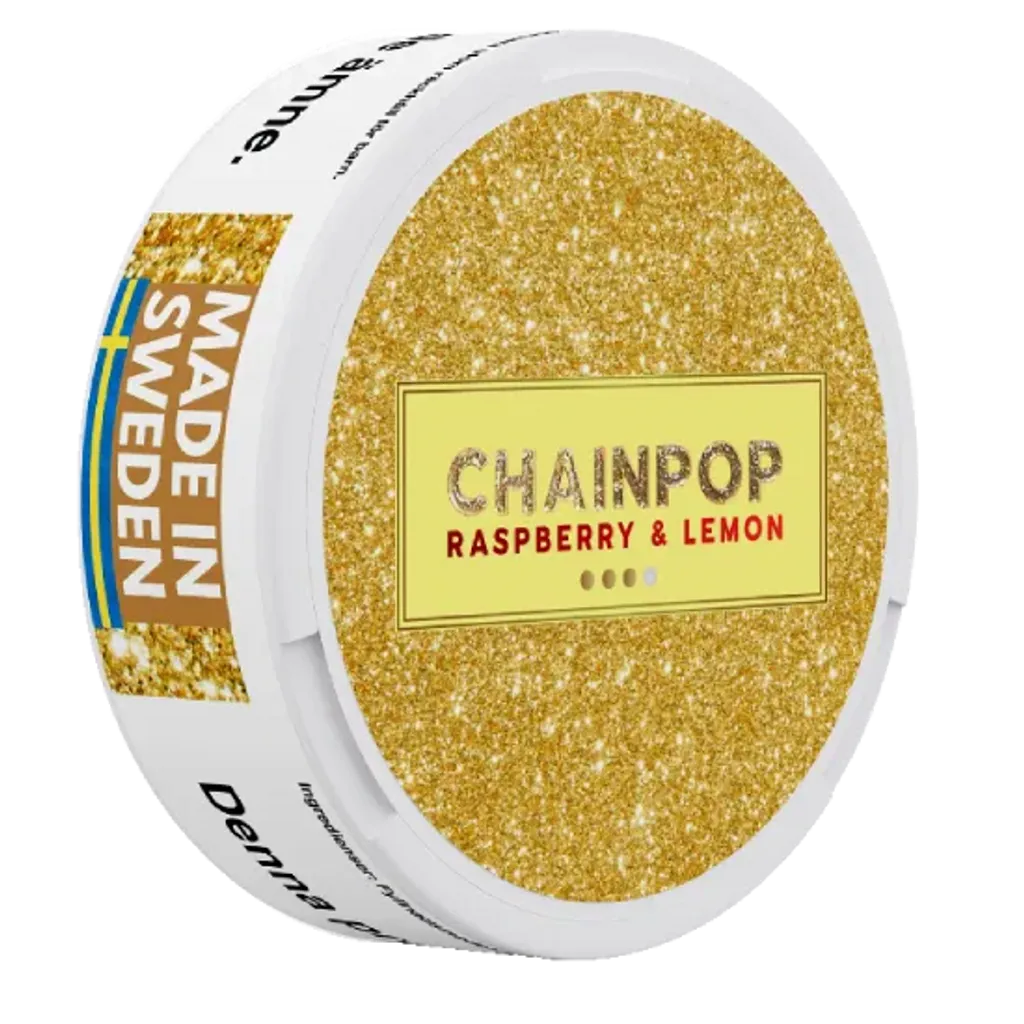 Chainpop Raspberry Lemon sind mittel starke Nikotin Pouches mit 7,2 mg/g Nikotin. Der erfrischende Mix aus Himbeeren und Zitrone sorgt für ein intensives Geschmackserlebnis. Die Slim-Beutel sind tabakfrei, diskret und ideal erfahrene Nutzer. Hergestellt von Chainpop AB. Enthält 20 Pouches pro Dose. Jetzt Chainpop online kaufen.
