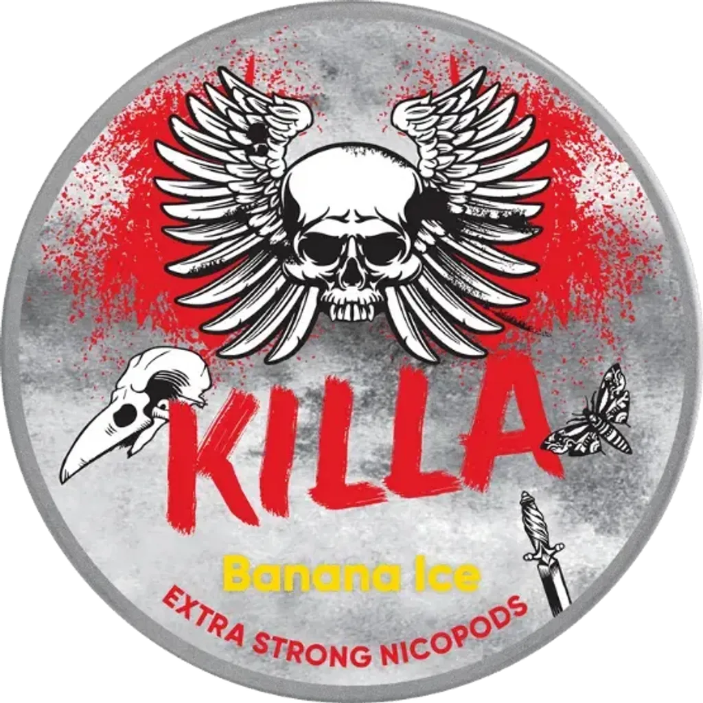 KILLA Banana Ice sind extra starke Nikotin Pouches mit 16 mg/g Nikotin. Der erfrischende Mix aus süßer Banane und Minze sorgt für ein intensives Geschmackserlebnis. Die Slim-Beutel sind tabakfrei, diskret und ideal für erfahrene Nutzer. Hergestellt von NGP Empire. Enthält 20 Pouches pro Dose. Jetzt Killa Snus online kaufen.