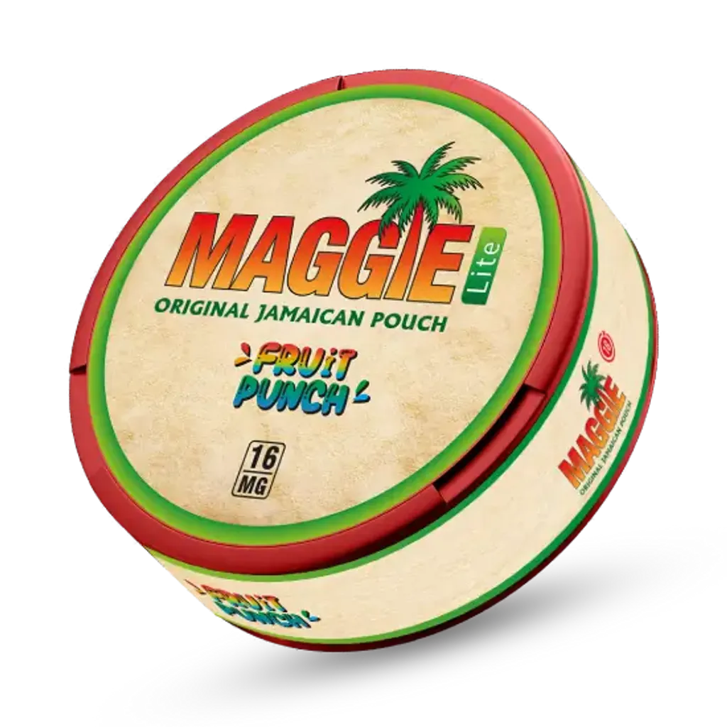 MAGGIE Lite Fruit Punch sind extra starke Nikotin Pouches mit 16 mg/g Nikotin. Der erfrischende Mix aus mehreren Früchten sorgt für ein intensives Geschmackserlebnis. Die Slim-Beutel sind tabakfrei, diskret und ideal für erfahrene Nutzer. Hergestellt von First Line Pods. Enthält 20 Pouches pro Dose. Jetzt Maggie Snus online kaufen.