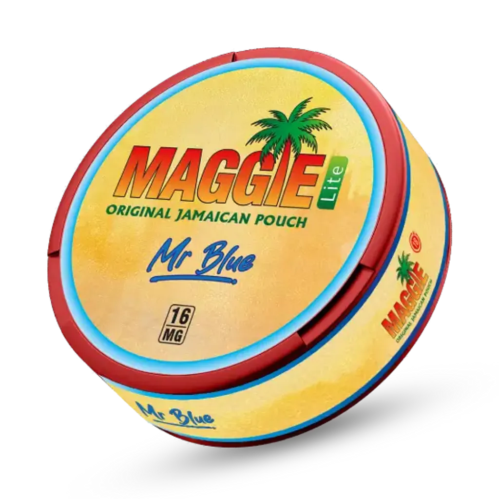 MAGGIE Lite Mr Blue sind extra starke Nikotin Pouches mit 16 mg/g Nikotin. Der erfrischende Mix aus Blaubeere und Johinnisbeere sorgt für ein intensives Geschmackserlebnis. Die Slim-Beutel sind tabakfrei, diskret und ideal für erfahrene Nutzer. Hergestellt von First Line Pods. Enthält 20 Pouches pro Dose. Jetzt Maggie Snus online kaufen.