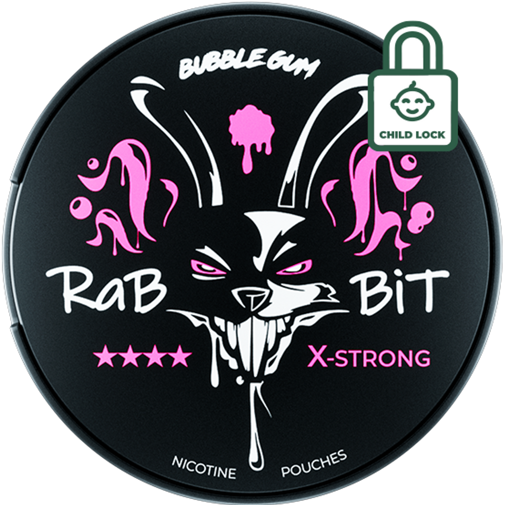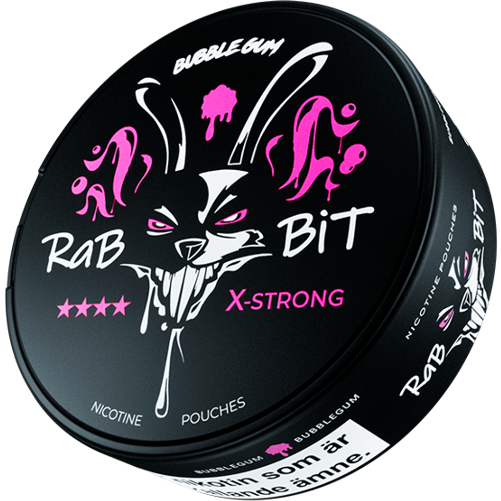 RaBBiT Bubble Gum X-Strong sind extra starke Nikotin Pouches mit 40 mg/g Nikotin. Der erfrischende Mix aus süßem Kaugummi sorgt für ein intensives Geschmackserlebnis. Die Slim-Beutel sind tabakfrei, diskret und ideal für erfahrene Nutzer. Hergestellt von Nicobit. Enthält 20 Pouches pro Dose. Jetzt Rabbit Snus online kaufen.