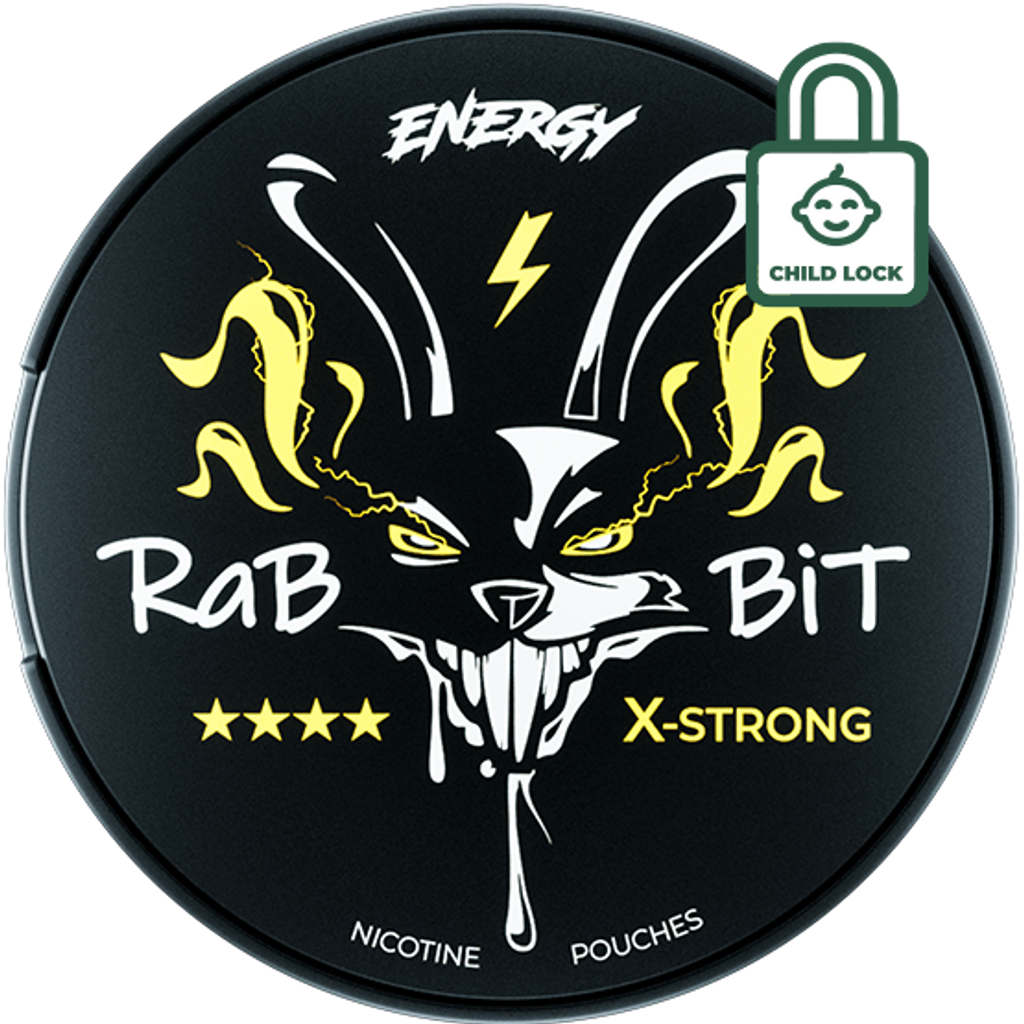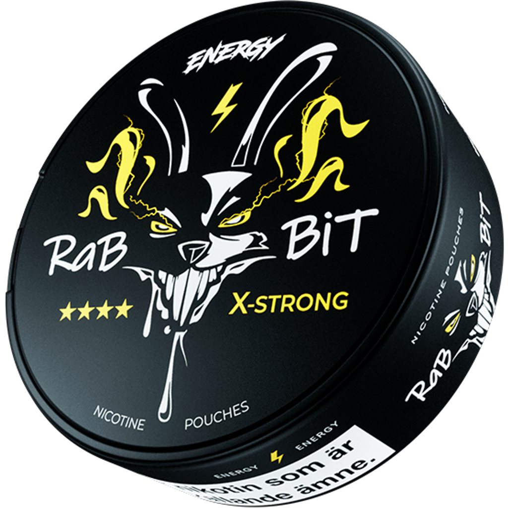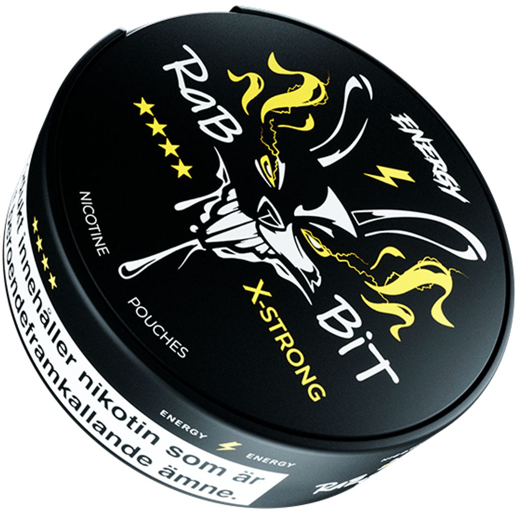RaBBiT Energy X-Strong sind extra starke Nikotin Pouches mit 40 mg/g Nikotin. Der erfrischende Mix aus Energy-Drink sorgt für ein intensives Geschmackserlebnis. Die Slim-Beutel sind tabakfrei, diskret und ideal für erfahrene Nutzer. Hergestellt von Nicobit. Enthält 20 Pouches pro Dose. Jetzt Rabbit Snus online kaufen.