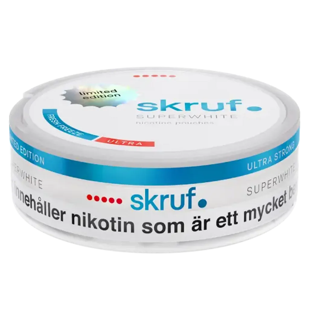 Skruf Fresh Freeze Ultra limited sind starke Nikotin Pouches mit 16 mg/g Nikotin. Der erfrischende Mix aus Minze sorgt für ein intensives Geschmackserlebnis. Die Slim-Beutel sind tabakfrei, diskret und ideal für erfahrene Nutzer. Hergestellt von Imperial Brands. Enthält 24 Pouches pro Dose. Jetzt Skruf Snus online kaufen.