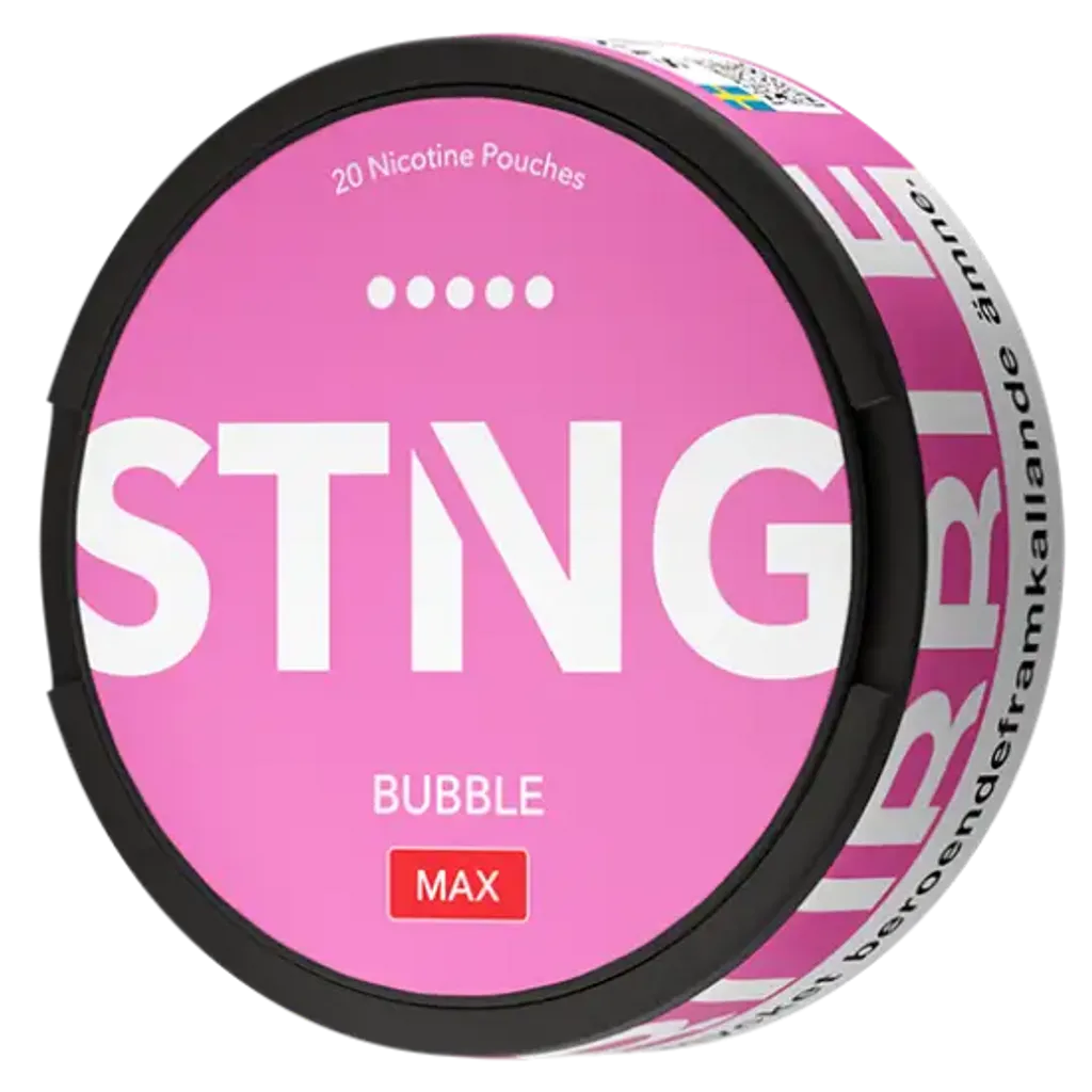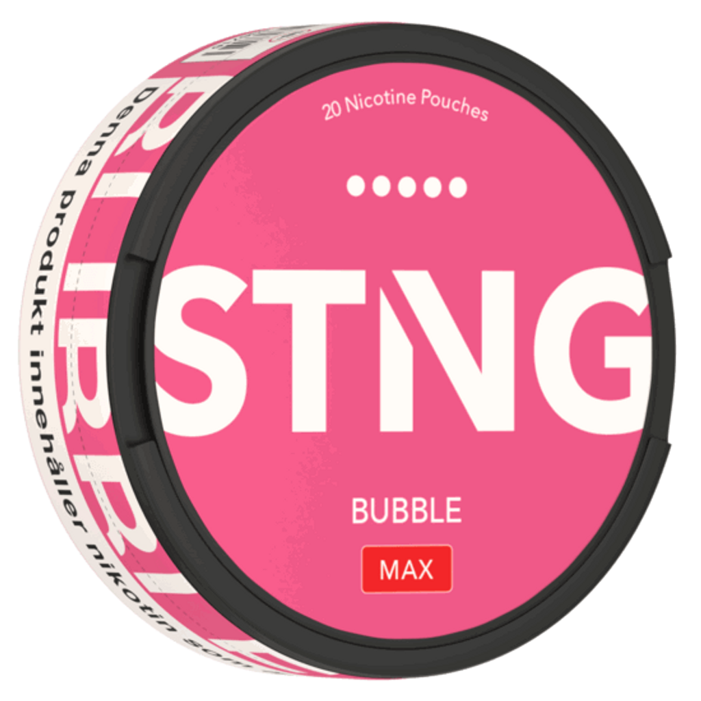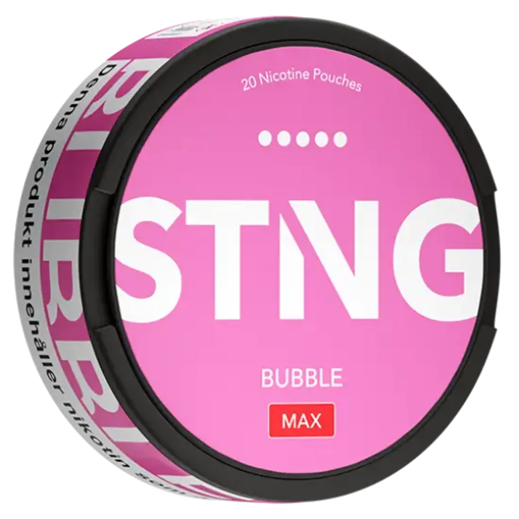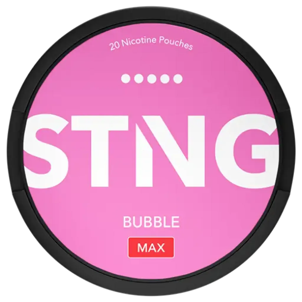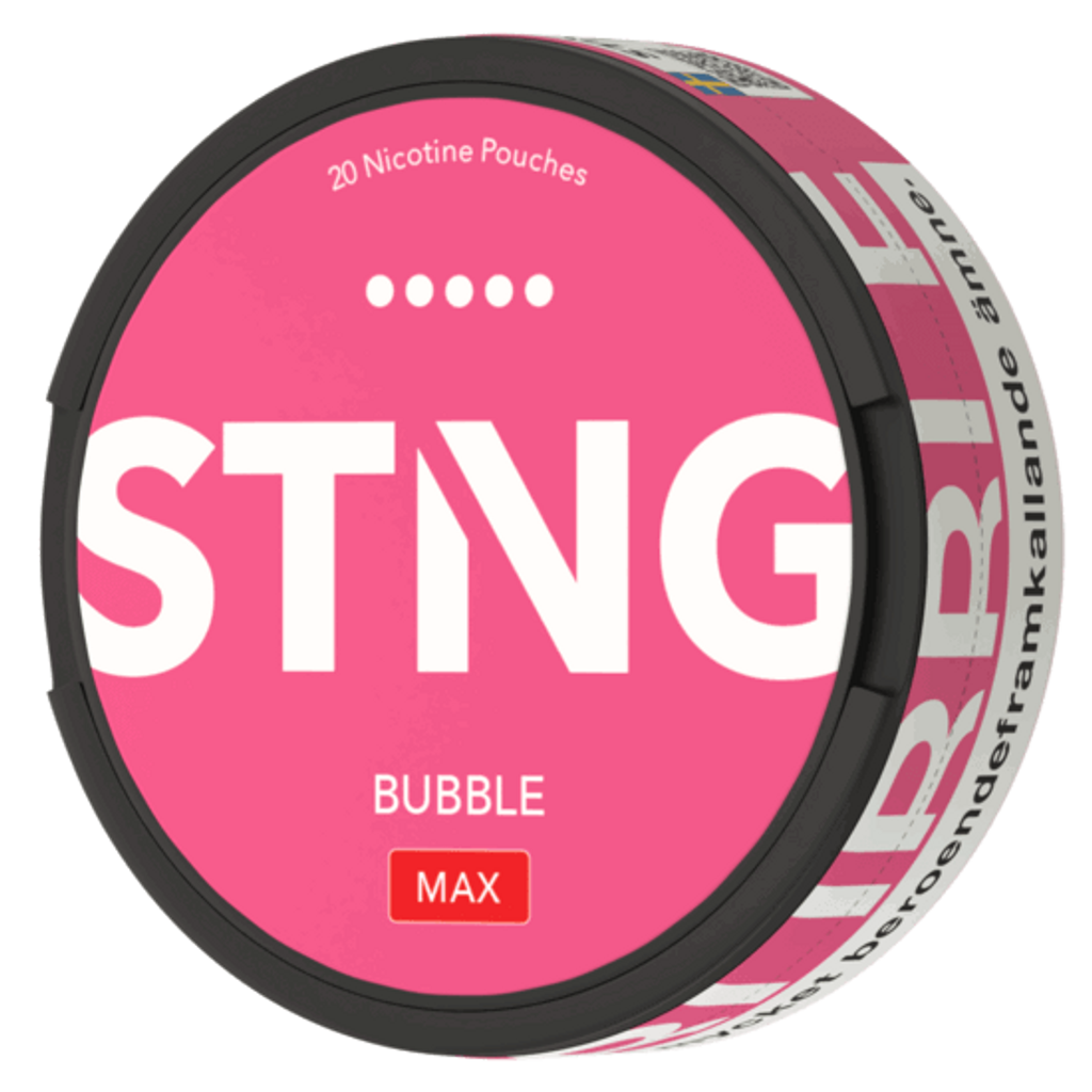 STNG Bubble MAX sind extra starke Nikotin Pouches mit 50 mg/g Nikotin. Der erfrischende Mix aus süßem Kaugummi sorgt für ein intensives Geschmackserlebnis. Die Slim-Beutel sind tabakfrei, diskret und ideal für erfahrene Nutzer. Enthält 20 Pouches pro Dose. Jetzt STNG Snus online kaufen.
