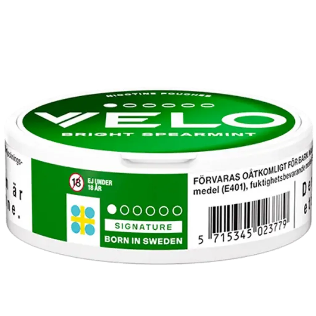 VELO Bright Spearmint Mini sind mittel starke Nikotin Pouches mit 8mg/g Nikotin. Der erfrischende Mix aus Pfefferminz und Menthol sorgt für ein intensives Geschmackserlebnis. Die Slim-Beutel sind tabakfrei, diskret und ideal für Einsteiger. Hergestellt von BAT in Schweden. Enthält 20 Pouches pro Dose. Jetzt Velo online kaufen.