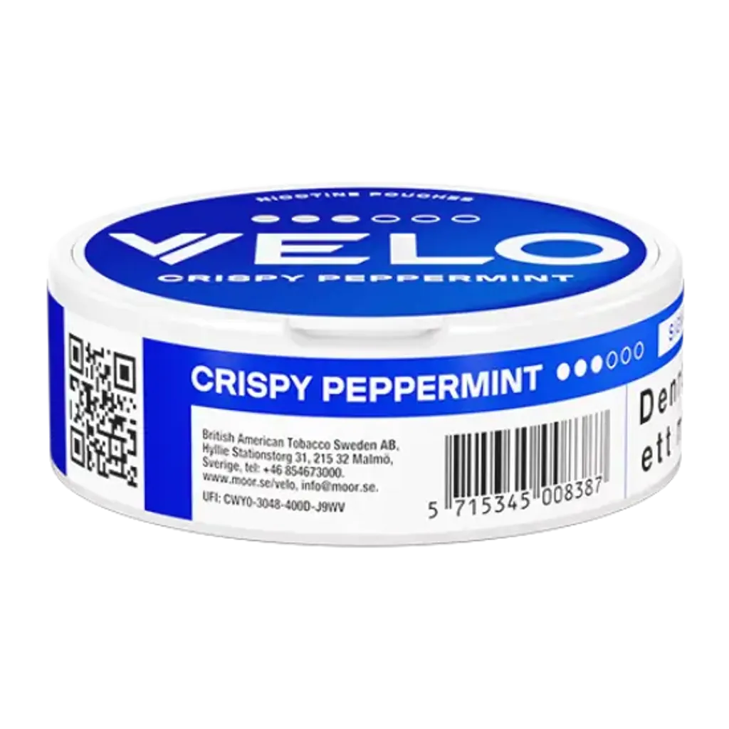 Velo Crispy Peppermint Slim sind starke Nikotin Pouches mit 14 mg/g Nikotin. Der erfrischende Mix aus Minze und Menthol sorgt für ein intensives Geschmackserlebnis. Die Slim-Beutel sind tabakfrei, diskret und ideal für erfahrene Nutzer. Hergestellt von BAT in Schweden. Enthält 20 Pouches pro Dose. Jetzt Velo online kaufen.