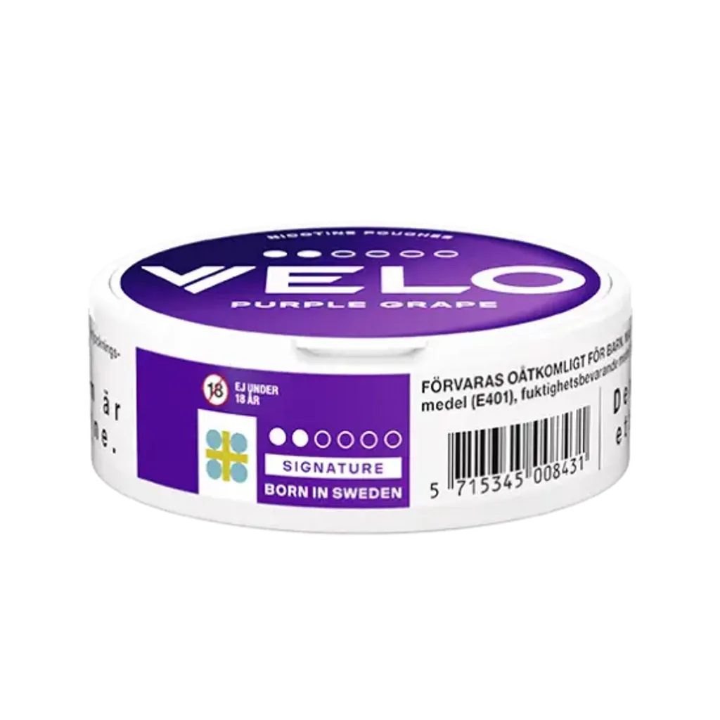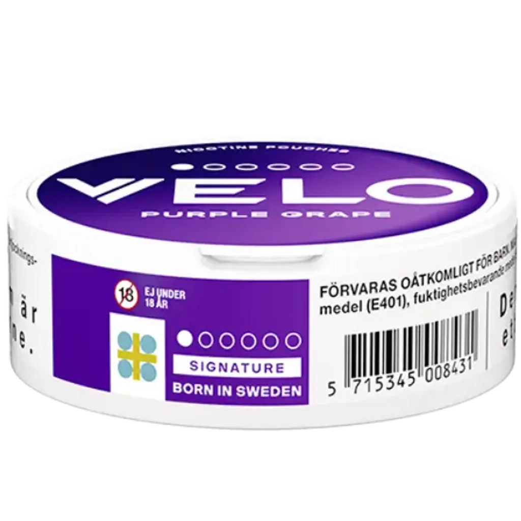 VELO Purple Grape Mini sind starke Nikotin Pouches mit 11,9 mg/g Nikotin. Der erfrischende Mix aus Weintraube sorgt für ein intensives Geschmackserlebnis. Die Slim-Beutel sind tabakfrei, diskret und ideal für erfahrene Nutzer. Hergestellt von BAT in Schweden. Enthält 20 Pouches pro Dose. Jetzt Velo online kaufen.