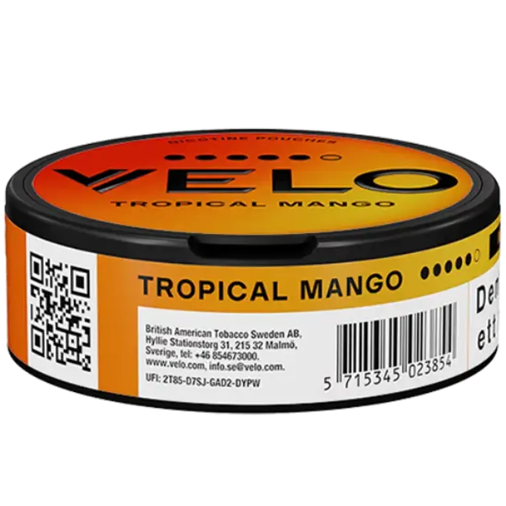 Velo Tropical Mango High Nicotin sind starke Nikotin Pouches mit 20 mg/g Nikotin. Der erfrischende Mix aus Mango und Früchten sorgt für ein intensives Geschmackserlebnis. Die Slim-Beutel sind tabakfrei, diskret und ideal für erfahrene Nutzer. Hergestellt von BAT in Schweden. Enthält 20 Pouches pro Dose. Jetzt Velo online kaufen.