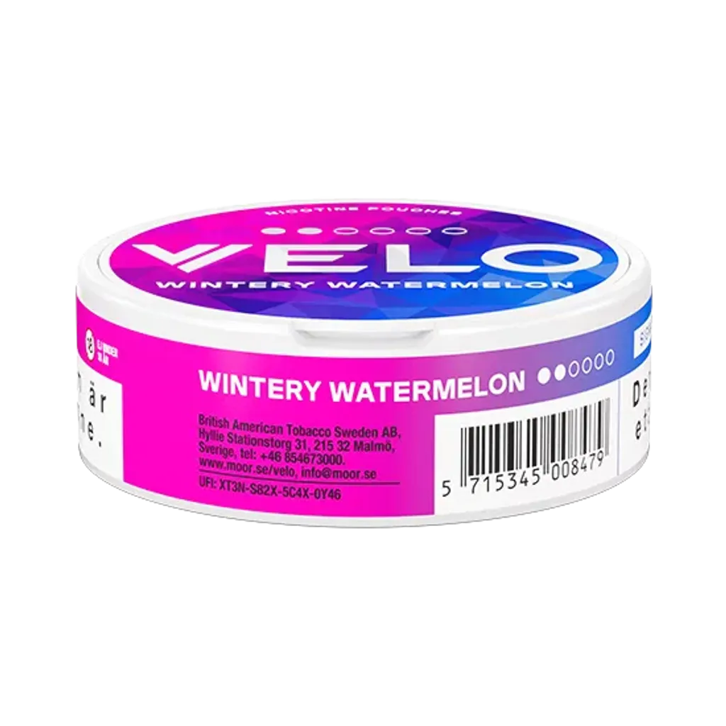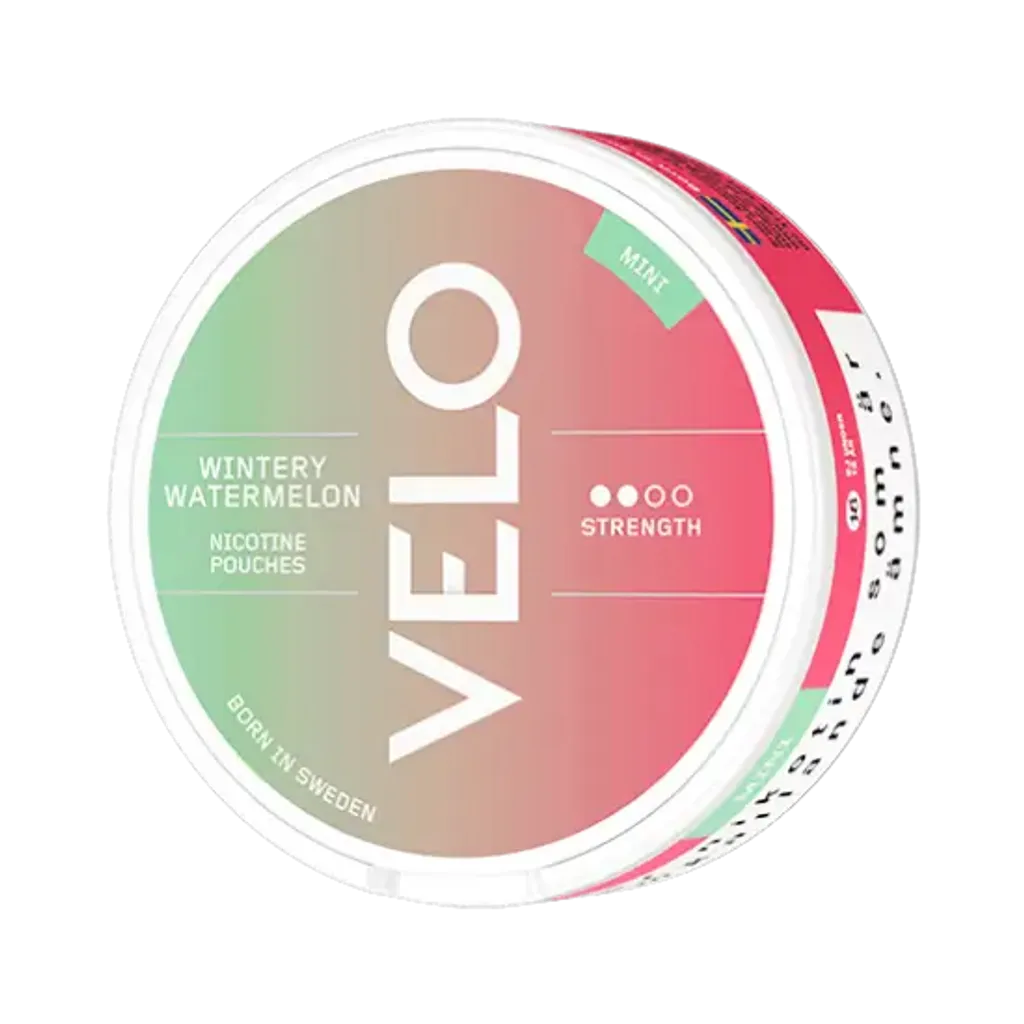 VELO Wintery Watermelon Mini sind starke Nikotin Pouches mit 11,9 mg/g Nikotin. Der erfrischende Mix aus süßer Wassermelone und Minze sorgt für ein intensives Geschmackserlebnis. Die Slim-Beutel sind tabakfrei, diskret und ideal für erfahrene Nutzer. Hergestellt von BAT in Schweden. Enthält 20 Pouches pro Dose. Jetzt Velo online kaufen.