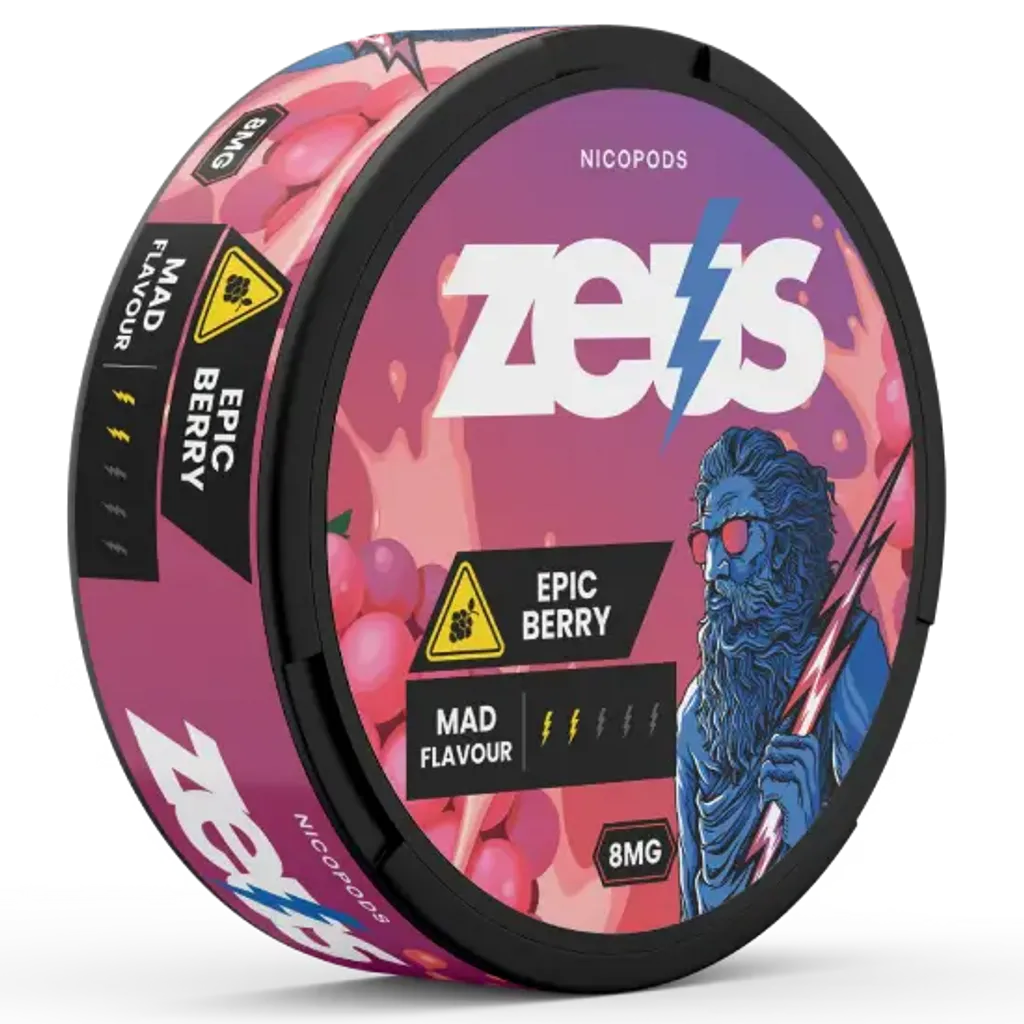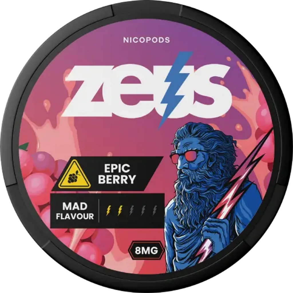 Zeus Epic Berry Medium sind mittel starke Nikotin Pouches mit 8 mg/g Nikotin. Der erfrischende Mix aus Beeren sorgt für ein intensives Geschmackserlebnis. Die Slim-Beutel sind tabakfrei, diskret und ideal für erfahrene Nutzer. Hergestellt von VivaSnus. Enthält 20 Pouches pro Dose. Jetzt Zeus Snus online kaufen.