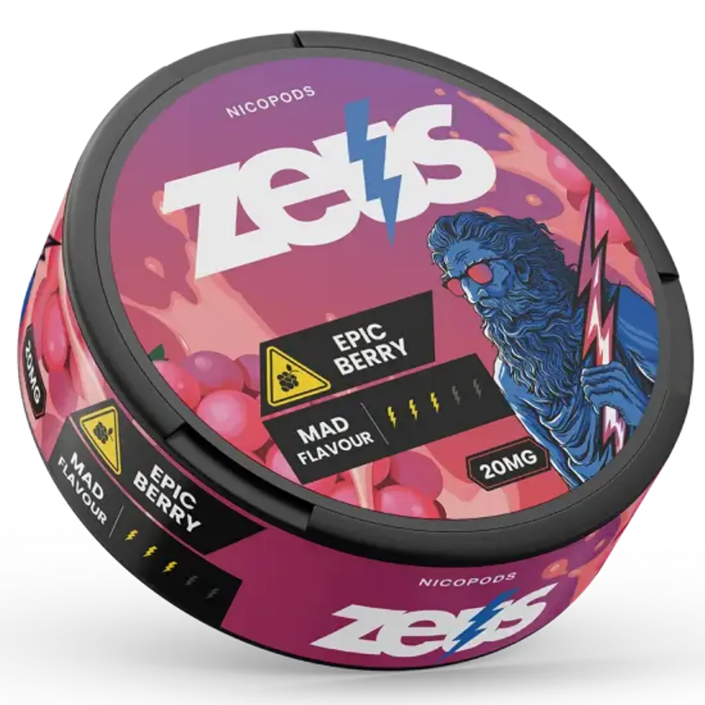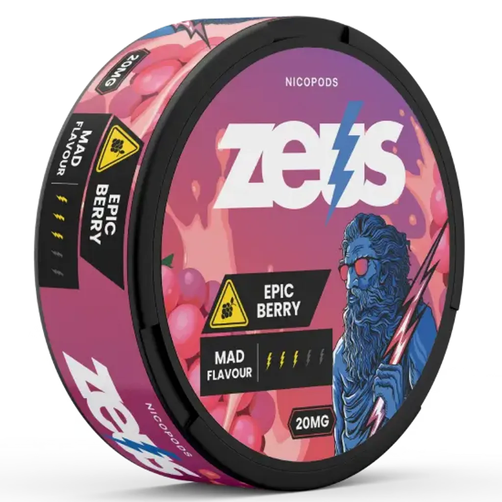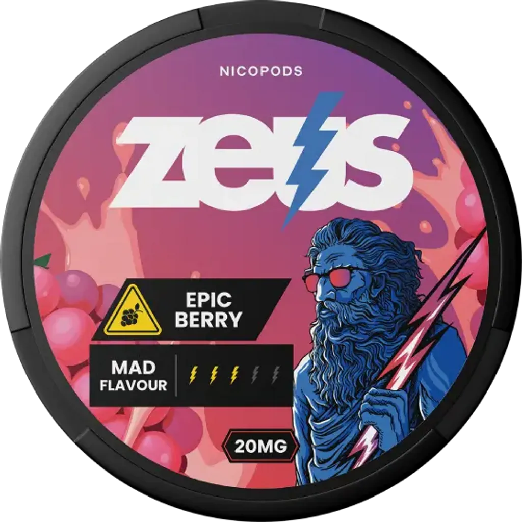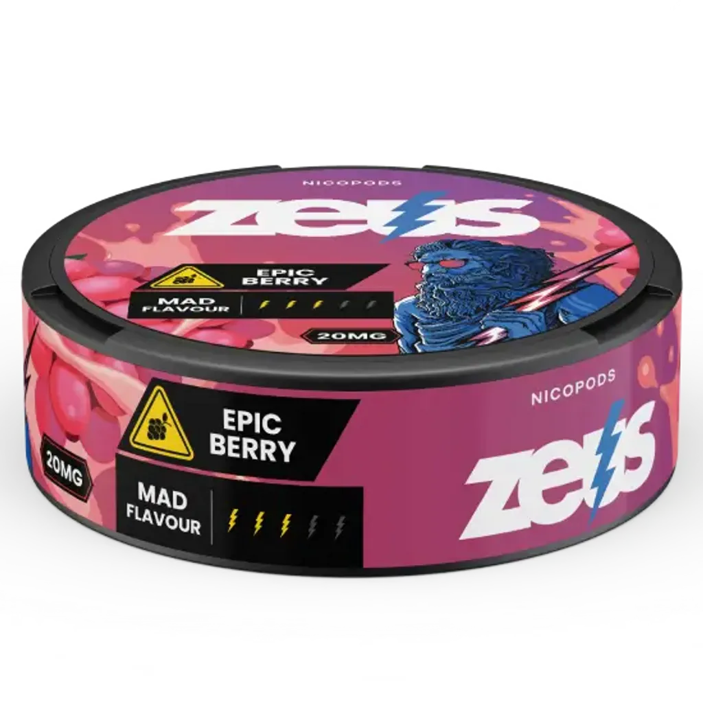 Zeus Epic Berry Strong sind extra starke Nikotin Pouches mit 20 mg/g Nikotin. Der erfrischende Mix aus Waldbeeren sorgt für ein intensives Geschmackserlebnis. Die Slim-Beutel sind tabakfrei, diskret und ideal für erfahrene Nutzer. Hergestellt von VivaSnus. Enthält 20 Pouches pro Dose. Jetzt Zeus Snus online kaufen.